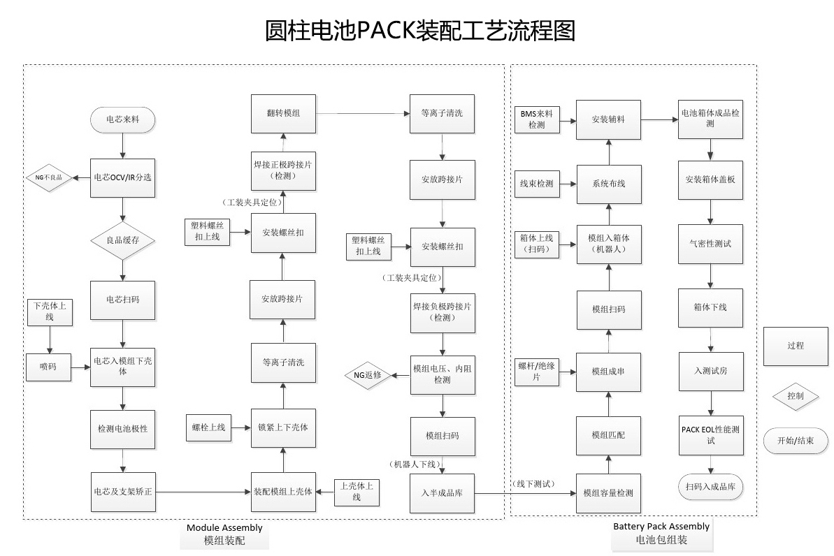 圆柱电池模组的PACK装配线流程一般包括以下主要步骤: